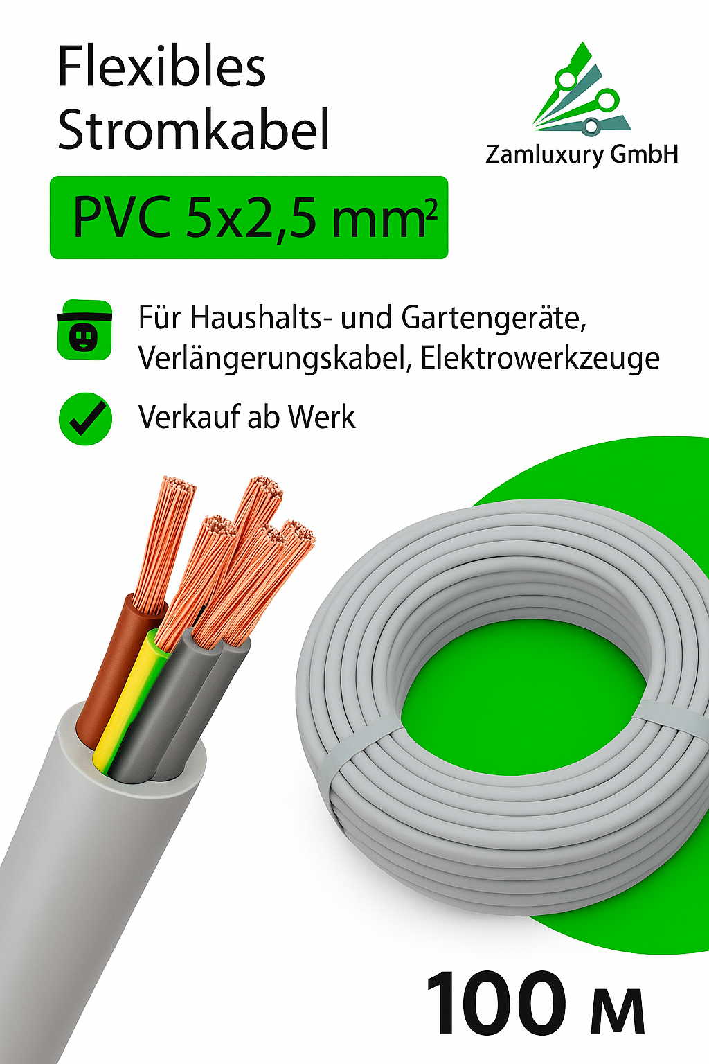 • Optimaler Querschnitt 5×2.5mm²: Garantiert ausreichende Strombelastbarkeit für die meisten privaten und viele industrielle Anwendungen.